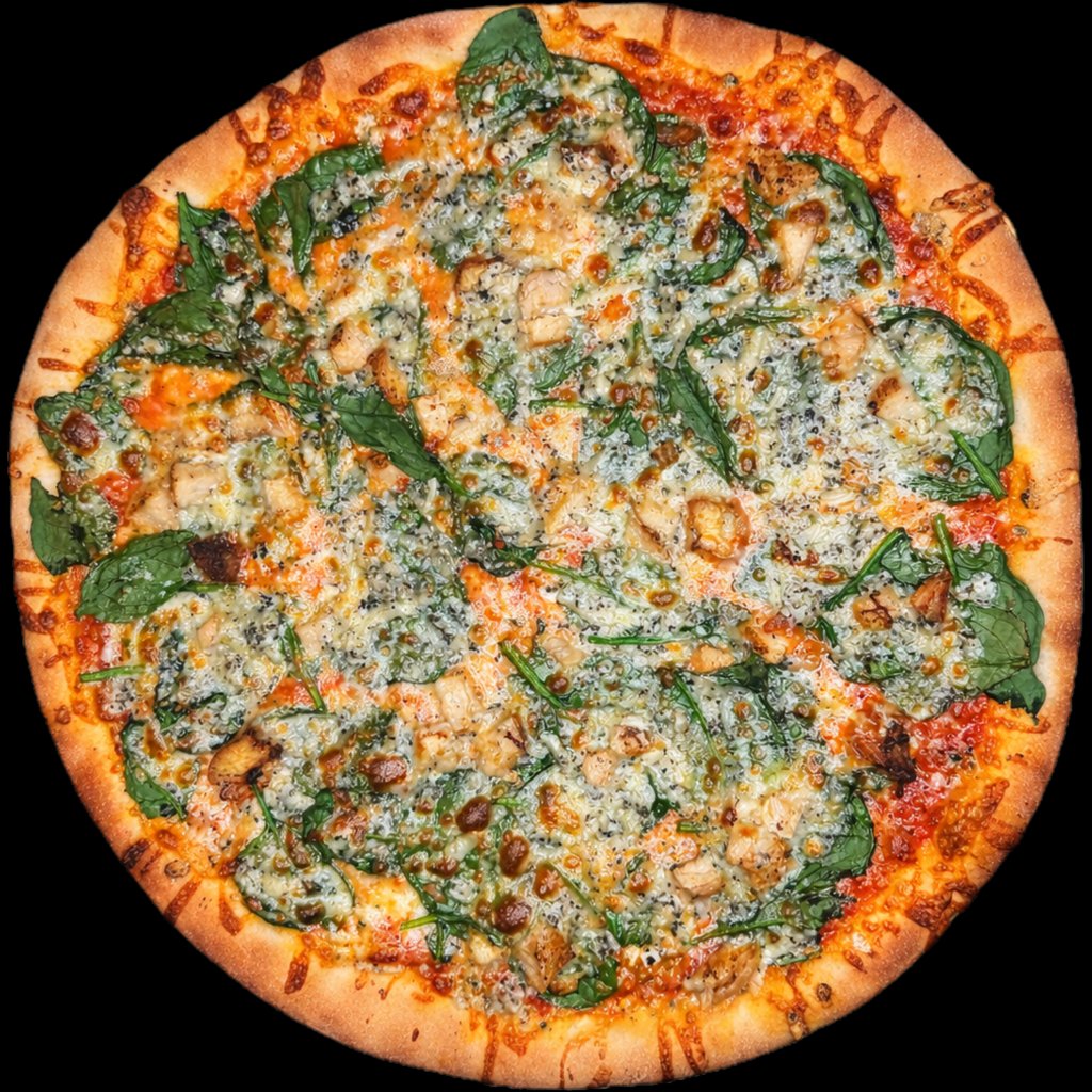 pomodoro, mozzarella, špenát, kuřecí kousky, niva