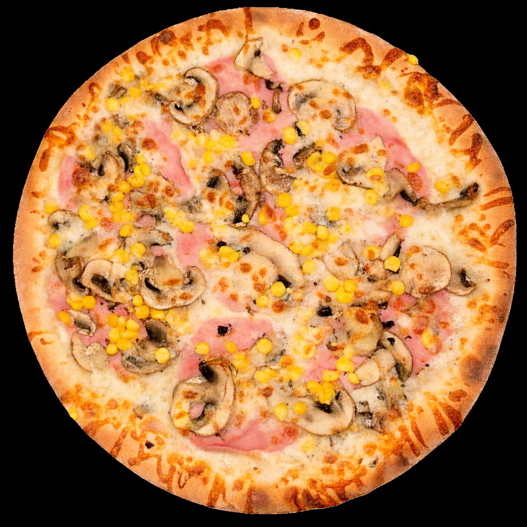 smetanový základ, mozzarella, šunka, žampiony, kukuřice