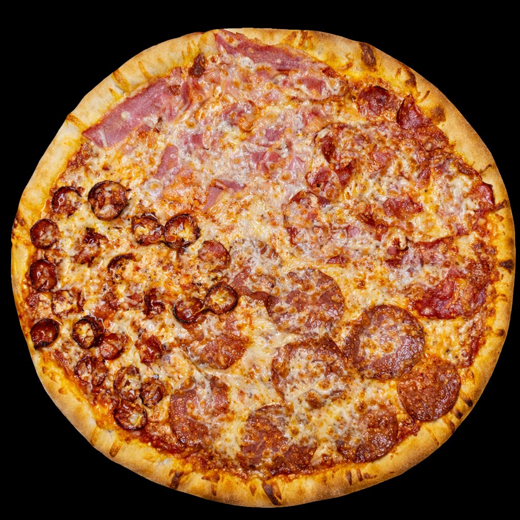 pomodoro, mozzarella, 1/4 ventricina, 1/4 vysočina, 1/4 čabajka, 1/4 slanina