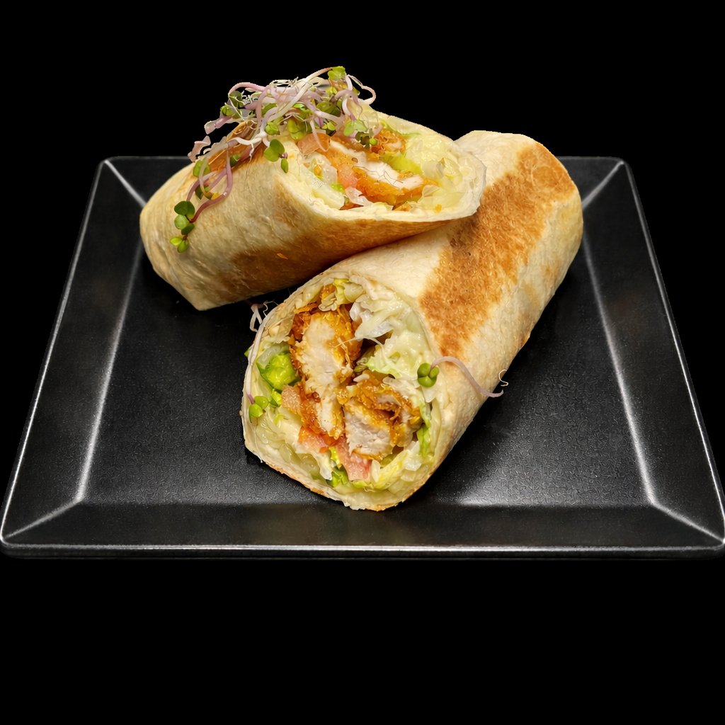 Tortilla, kuřecí stripsy, mozzarella, rajče, ledový salát, mojonéza, 350g