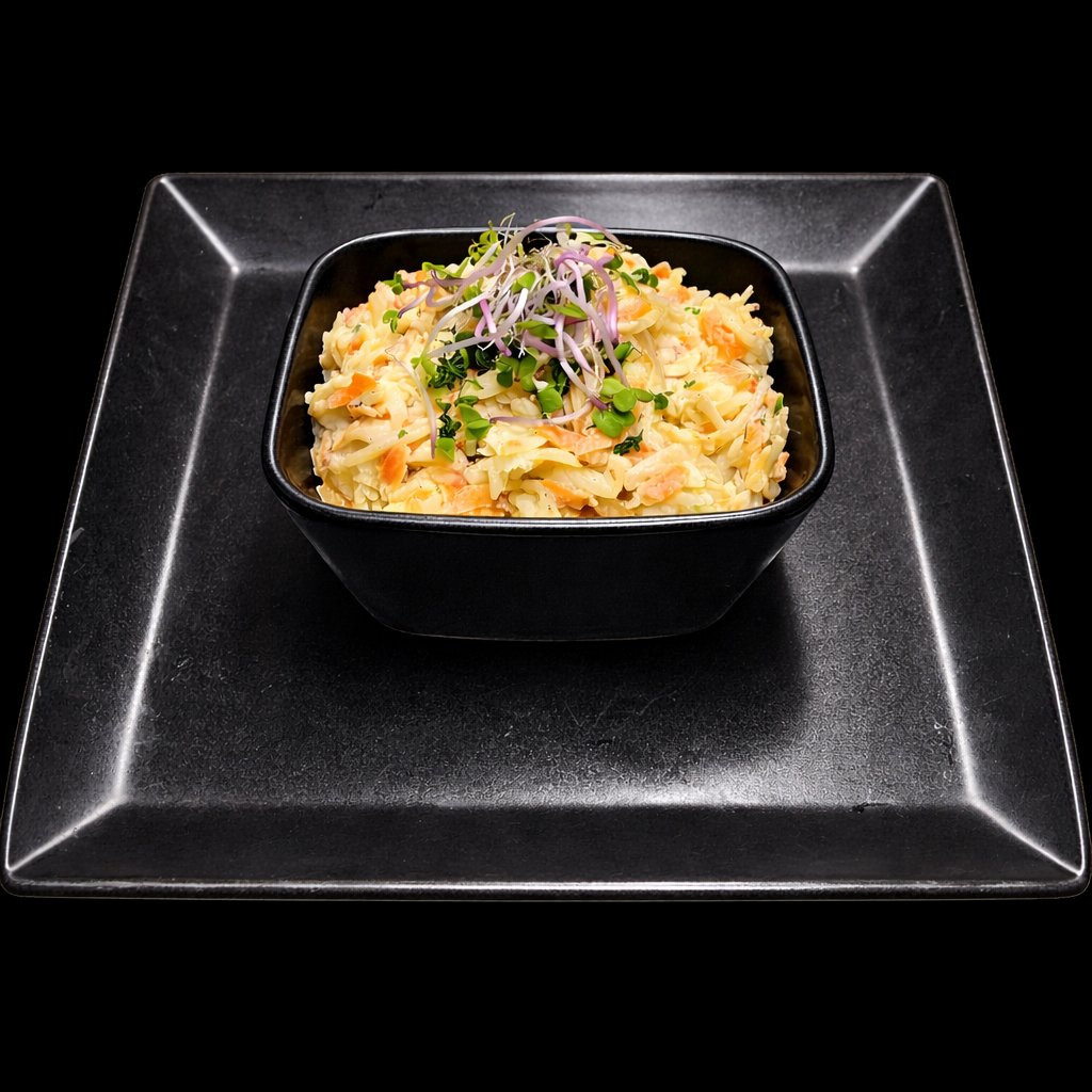 Hlávkové zelí, mrkev, celer, majonéza, citronová šťáva, ocet, koření